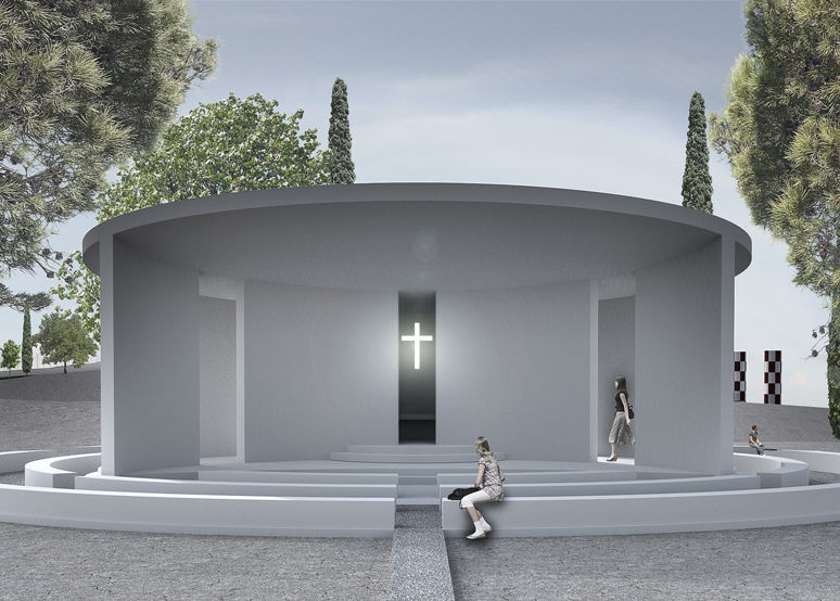 • Ο κύκλος στη γεωμετρία είναι ένα από τα σύμβολα της γυναίκας και κατ’ επέκταση της γονιμότητας της ζωής. Για να διατηρήσουμε το συσχετισμό, το μνημείο και η εκκλησία έχουν κυκλικό σχήμα και αλληλεπιδρούν μεταξύ τους μέσα από αυτό.